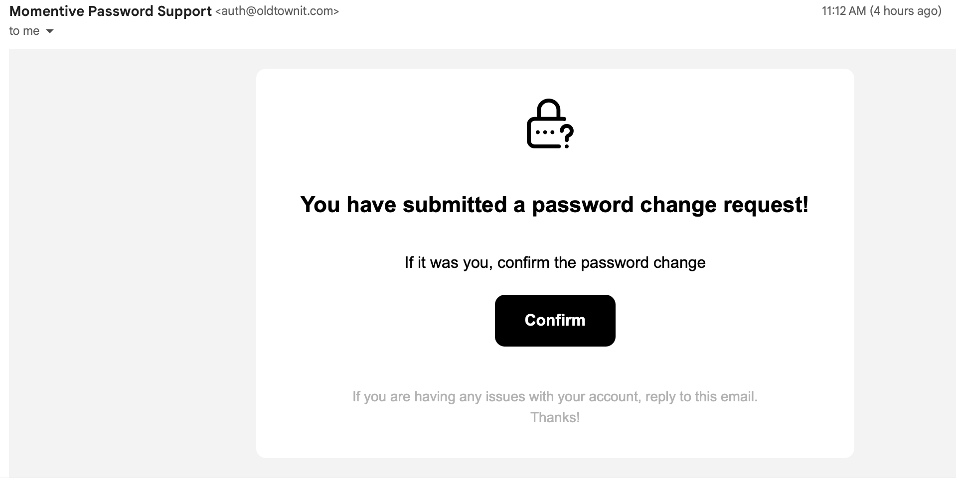 - Admins will receive an email from Momentive Password Support to set or reset their password.
