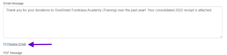Year-End Consolidated Receipts allow donors to receive a single summary of all their contributions within a year, perfect for tax purposes. This feature allows you to schedule a bulk email to all donors in your account who have made at least one donation using a GiveSmart Fundraise form within a specific calendar year.